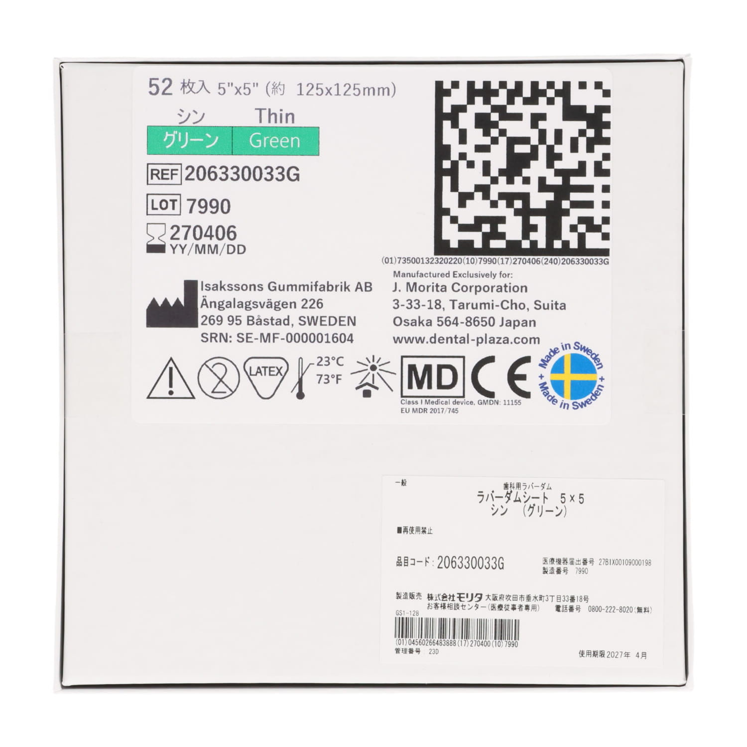 206330033G | ラバーダムシート 5×5 シン グリーン |