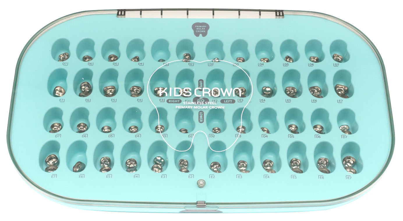 トリミングしやすく、解剖学的形態を有したステンレススチール乳歯冠です。汚れを付きにくくする為のシリカコーティング加工を施しています。