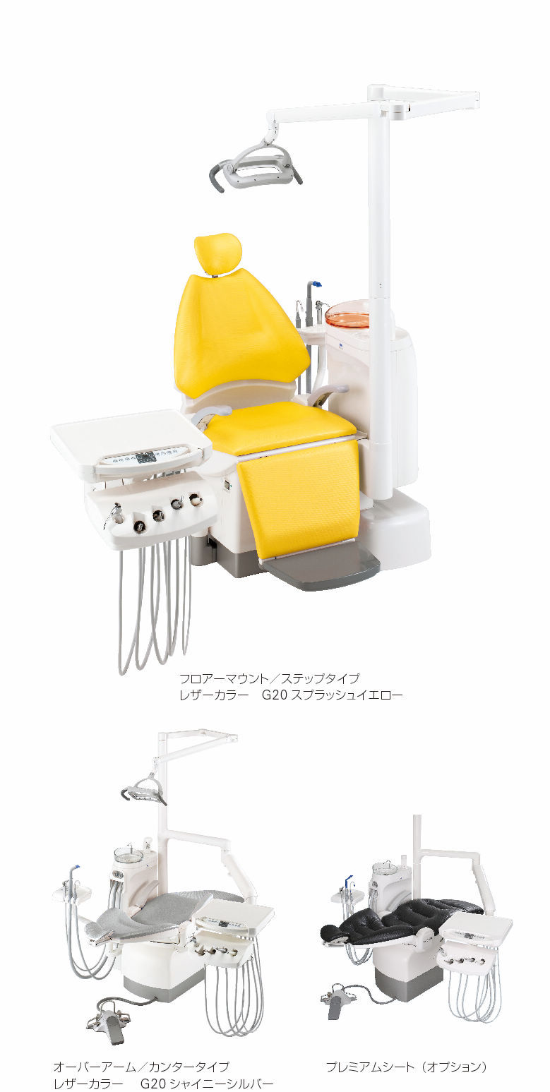 | 仕様 | 【仕様】 - 型式:TU110 - 電源:AC100V 50/60Hz - 消費電力:1.5kVA - シート昇降方式:油圧電動 垂直昇降 - シート座面高さ(床面より):最高位 750mm 最低位 450mm - バックシート角度(水平に対して):起立 78゜ 傾斜 2゜ - 質量:約240kg - シートカラー:G20 シャイニーシルバー(G20 SS)、G20 スプラッシュイエロー(G20 SY)、G20 ハニーピンク(G20 HP)、G20 フレッシュグリーン(G20FG)、G20 スウィートブラウン(G20 SB)、G20クールバイオレット(G20 CV)、G20 グロスブラック(G20 GB) - 磁器ベースンカラー:白磁(HJ)、青磁(SJ)、橙釉(DJ)、赤釉(AJ)、黒釉(KJ) 【標準装備】 - ルナビューES(LED) - エアータービン ツインパワータービンp <ライト付き> - マイクロモーター トルックス(TR-91) コントラヘッド(QL26B)/シャンク(US121)/ ストレート(ST21) 各1本付き - スリーウェイシリンジ(WS201) - バキュームシリンジ<吸引量調整バルブ付き>(VS110) - サライバエジェクター<吸引量調整バルブ付き>(SE110) - 術者側5連インスツルメントホルダー - フットコントローラー(FC201) - ヘッドレスト(ラチェット回転軸方式) - アシスタント側アームレスト - オートフィラー給水(紙コップ対応・光センサー式ベースン自動洗浄付) - 給水カチット(水量調整バルブ付き) - 磁器ベースン - バキュームタンク |