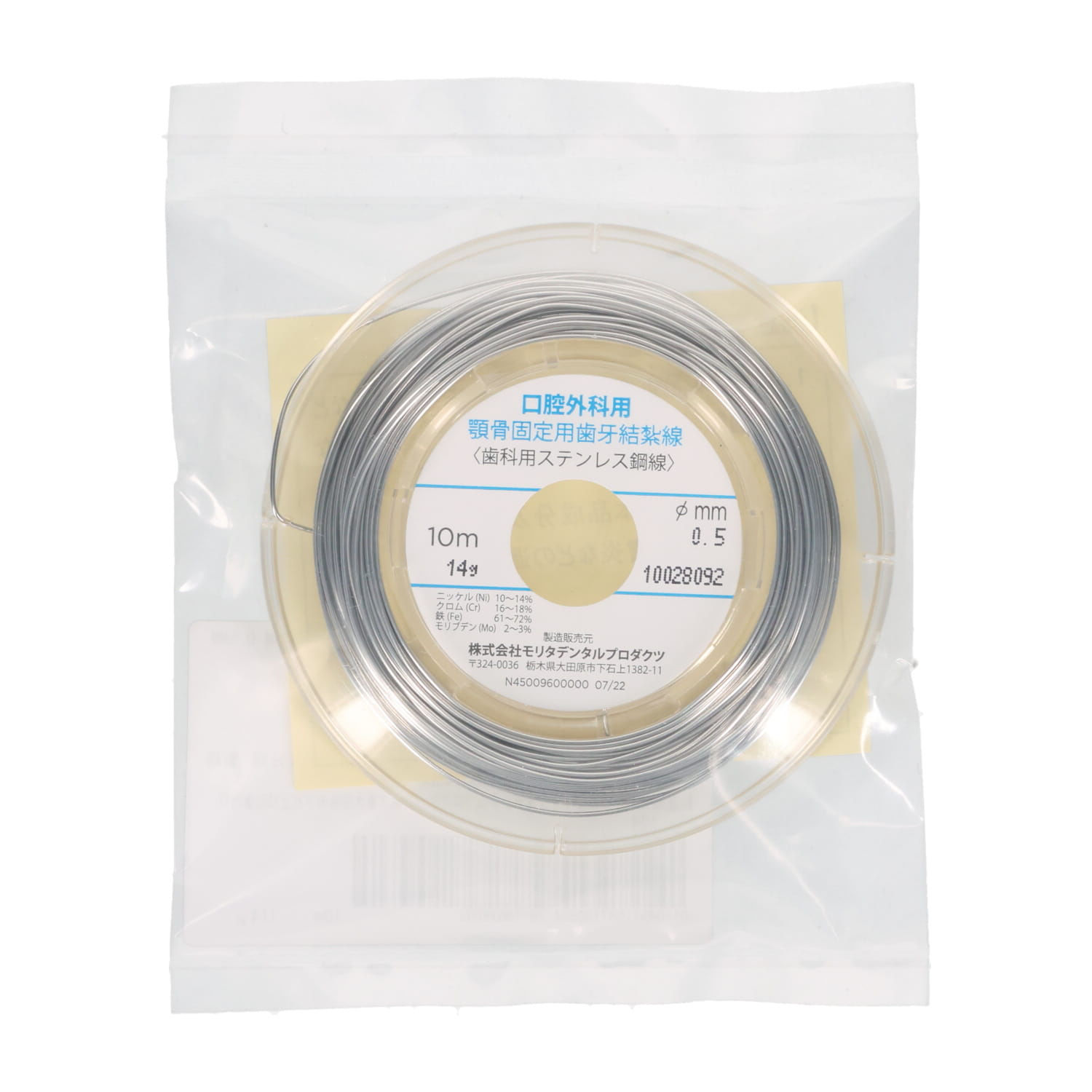 顎骨骨折時にシーネと併用して顎全体を固定し治療を促すステンレス鋼線です。