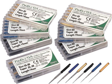 先端径が大きくなるに従い、テーパーが大きくなるように設計されたファイルで、根管の開口部から中央部付近までを適切なフレアー状に形成するためのニッケルチタン製ファイルです。ゲイツグリッデンドリルやピーソリーマーに比べ、切削片を歯冠側に排除しながら、より安全にフレアー形成ができます。