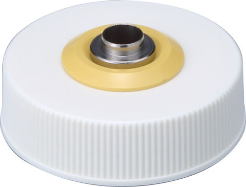 ワンタッチカートリッジシリンジⅡ ez使用後、「廃棄ボトルS」に取り付けた「リリース用フタⅡ」の廃棄口に注射針を“カチッ”と音が鳴るまで差し込むと、注射針が簡単に外れ、「廃棄ボトルS」内に針が収納されます。