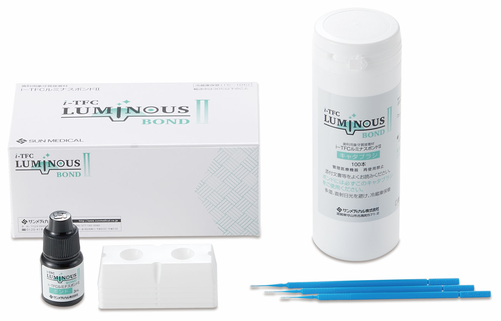 「ボンド」には拡散促進モノマー「4-META」、「キャタブラシ」には親水性アミノ酸系重合開始剤が配合されています。それにより、湿潤した根管象牙質や、光が届きにくい根管深部においても、硬化が促進され、「LCフローS」と高い接着性を示します。