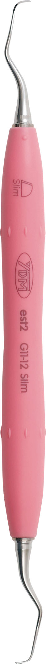 est2は、より繊細なブレードのコントロールを可能にするため、従来のGキュレットのブレードよりも先端を0.5mm短くしています。