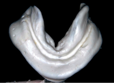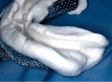 印象材にコシがあるため、粘膜を押し広げることができ、義歯作製に適した印象を取ることができます。