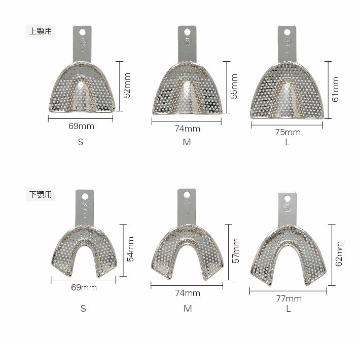 穴あきリムロックタイプの有歯顎用トレーです。印象材の維持力に優れ、正確な印象が採得できます。また、堅牢で変形がなく、耐久性に優れています。※166℃までオートクレーブ滅菌可能(乾燥工程不可)